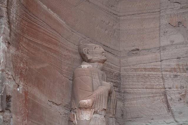 这尊造像依山取势,因地制宜,雕刻了一个相反方向的左侧卧佛,目前是国内最大的唐代全身左侧卧佛。