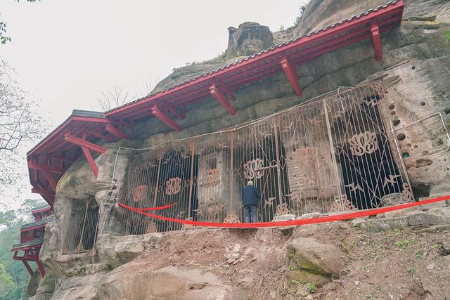 因为风化的原因,毗卢洞关闭了两年来加檐加固。毗卢洞不仅让我们看到了历史的精彩,也让我们看到了现在对文化保护的决心。