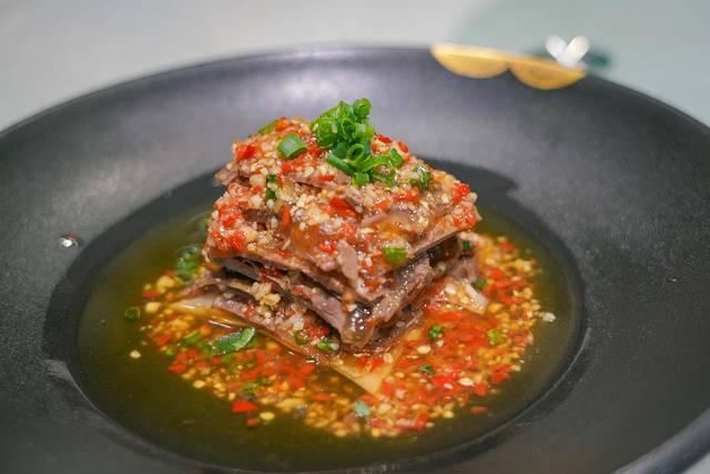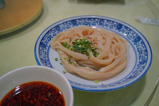 一定要隆重的介绍这道菜,这是安岳都有米卷,每次回安岳我们都要带这个回成都。其他地方是做不出米卷的,据说必须要用安岳的米和水才行。安岳米卷基本有两种亮色,一种就是照片上的米白色,一种是灰色的。搭配独家酱料,入口清爽,香醇软糯。