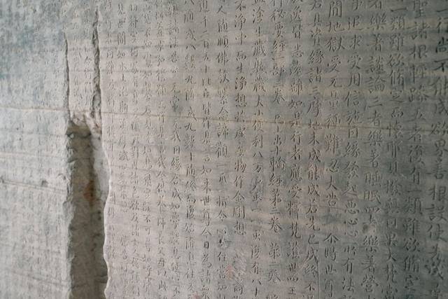 在卧佛院还有一个比较出名的是摩崖刻经。整个卧佛院大概40万字,用了20年左右的时间来刻。当时为了经文能传播下去,不能用纸,很容易被毁坏,所以想了一个办法,刻在岩石上,这样保存更好,所以有了现在我们能看到的摩崖刻经。