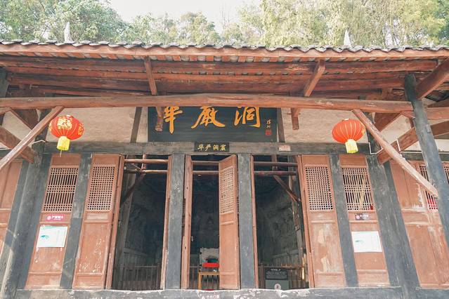 在离毗卢洞不远的地方,还有一处华严洞。华严洞位于石羊镇箱盖山上,寺外是远山、近壑、山泉、幽涧,宛如世外桃源。也有人说华严洞的正前方犹如一个聚宝盆。