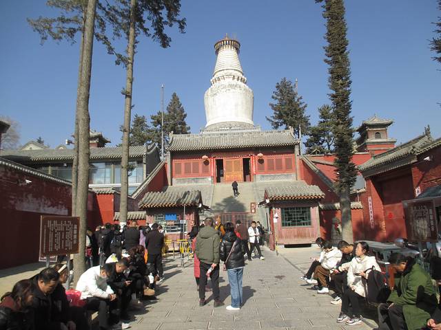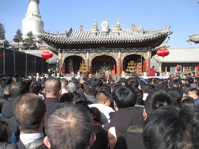 塔院寺东临五爷庙,传说很灵验,人气那叫一个旺。这个寺庙不另收门票,但是,从大门外就开始排队了,好不容易进入,不大的院落人挨人,人挤人,硬是站得满满当当。寺院没有预备太多的跪垫,一次只能有十来个人同时跪拜,所以哪位香客要想进香许愿,排队候着能个把钟头轮到那都算是人少的时候了,高峰时期的话只能从两侧意思一下,想在龙王像前拜一拜那得看你心诚不诚,耐不耐得住时间的考验。