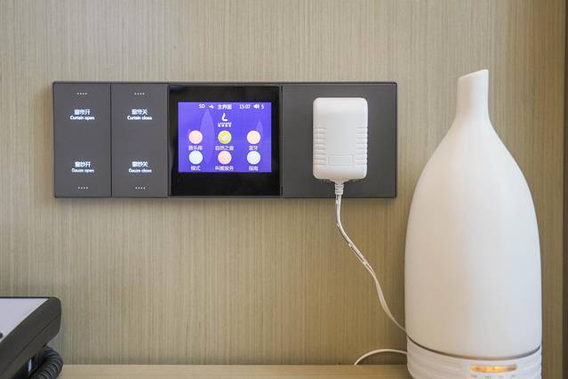 房间内的蓝牙音响,随心连接。控制面板还可以直接选择播放助眠之音,让住宿更添愉悦。