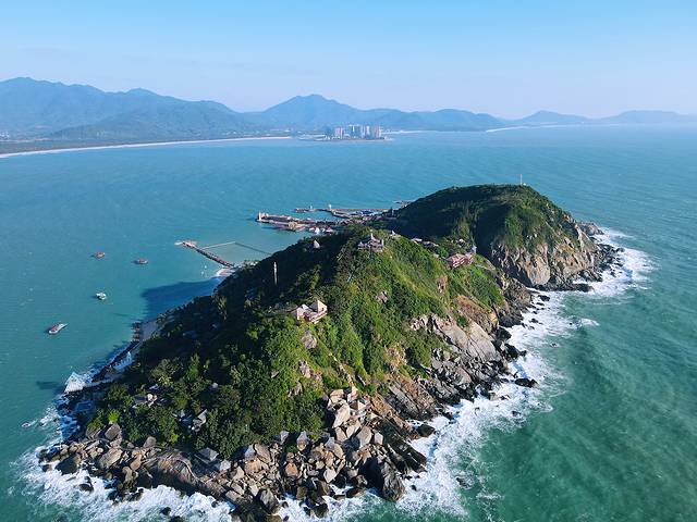 ⛩️风约亭,从欢喜堂往下走,会经过分界洲岛石碑,然后继续向前走200米就到风约亭了,风约亭处有判笔、定海神针都一般。风约亭向下走,有两个观景平台,一个高一点的适合放无人机,一个低一点的离海非常近,此处也能看到决断谷和企鹅石。