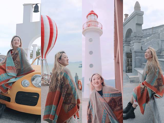 ⛩️大洞天车站的热气球,爱情海岸的汽车、教堂、沿海栈道(有一处小门可打开,站在临海礁石上拍照,很多婚纱摄影在此处拍照)