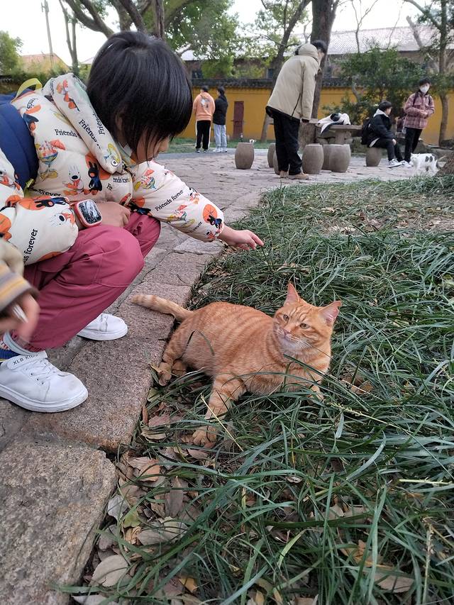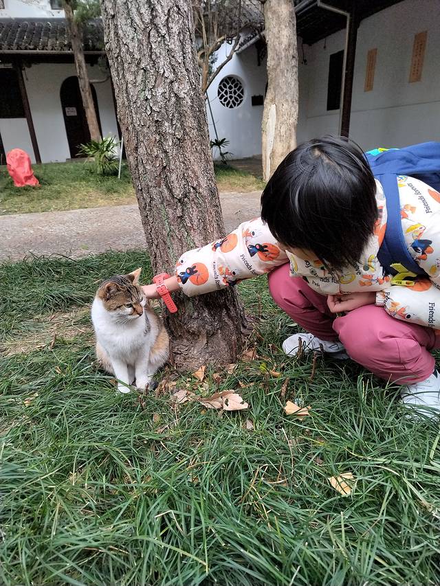 拙政园出来滴滴去西园寺,一定要去南门那边下,其他门不开,我绕了半圈才找到门进去差点以为寺没开!西园寺斋面和素包子很出名,还有奶茶和饮品卖,来这解决午餐不错,斋面15一碗,口味偏甜,面筋好吃!素包子10元五个很饱实,吃完再买杯红豆薏米水!西园寺观感其实更像公园,据说当地人觉得西园寺比寒山寺灵验,寒山寺比较商业化,我看攻略更建议去西园寺!西园寺养了超多猫,五颜六色每一只都很肥很亲人皮毛油光发亮,求撸求投喂,用树枝和胶袋做条简易版逗猫棒孩子可以玩半天!这寺有吃有喝有猫撸,拜神只是顺便的!
