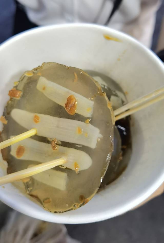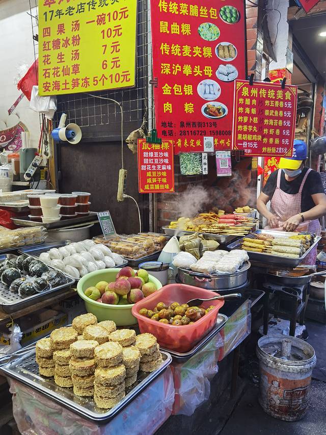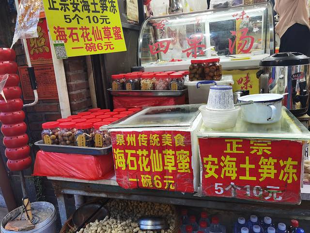 在开元寺门口附近,看到挺多人买的,买土笋冻和炸醋肉试一下