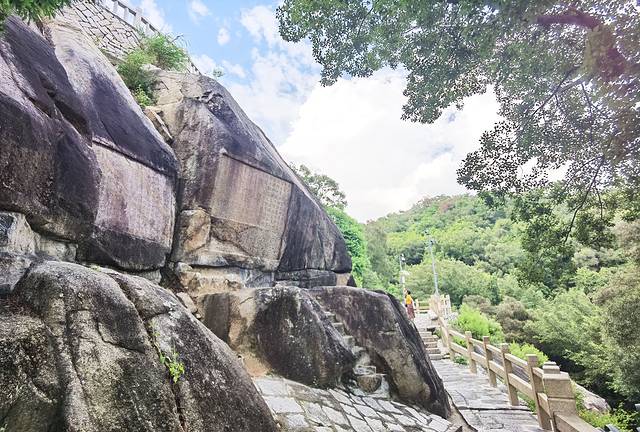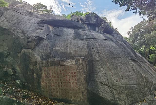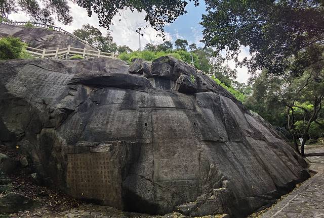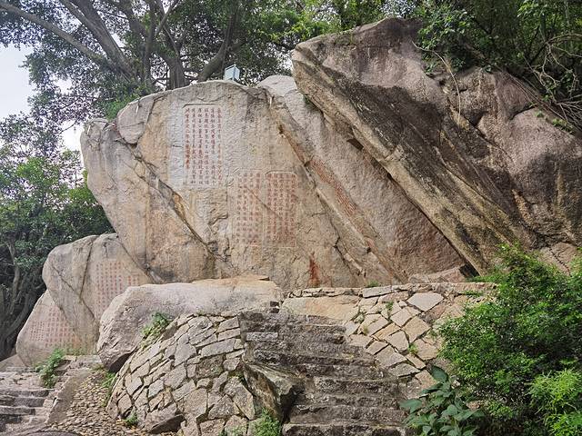 九日山祈风石刻群九日山以“山中无石不刻字”饮誉宇内。是我国现存最多的祈风石刻,历代摩崖石刻达75方,其中海交祈风及市舶司事石刻13方,记载了从南宋淳熙元年至咸淳二年(公元1174—1265年)冬季遣舶和夏季回舶的祈风情况 。