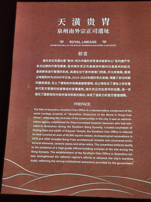 南外宗正司遗址是掌管宋代外居宗室事务的官署和南宋皇族居住遗址。内有整个泉州城历史沿革宣传片,约30分钟。
