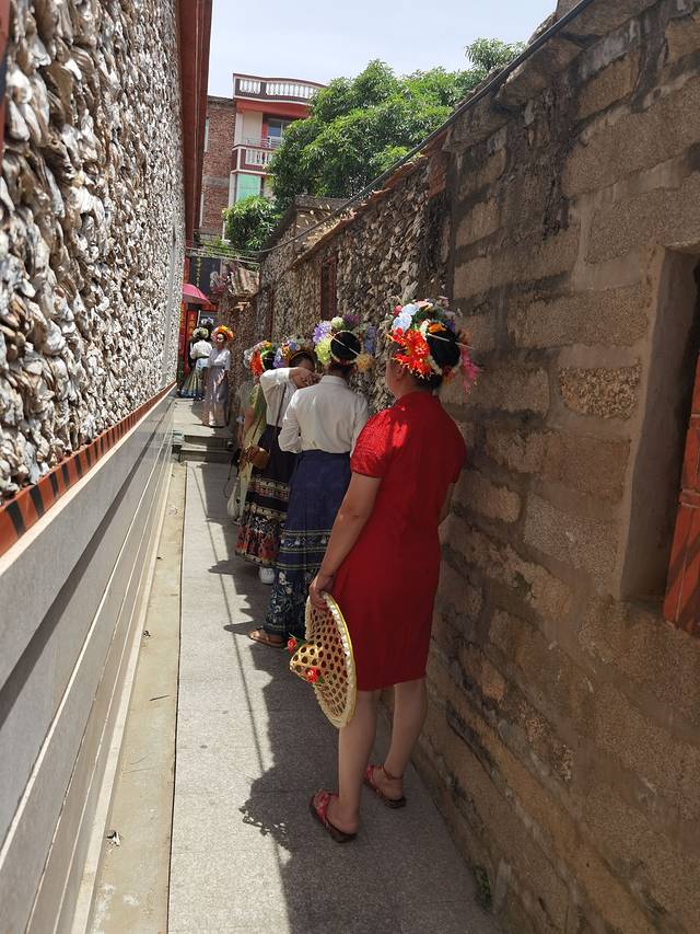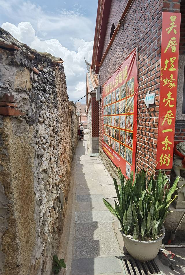 穿行于弯弯曲曲的古老巷道,宛若步入迷宫,在别墅群的夹缝中生存的,除了一些石头抑或木石砖结构的老房子,还有一种独具特色的民居:蚵壳厝。蚵壳厝散发着浓浓的古城余韵,外墙上密布的大贝壳在阳光下熠熠生辉,还没见到海,就已先嗅到海的气息。