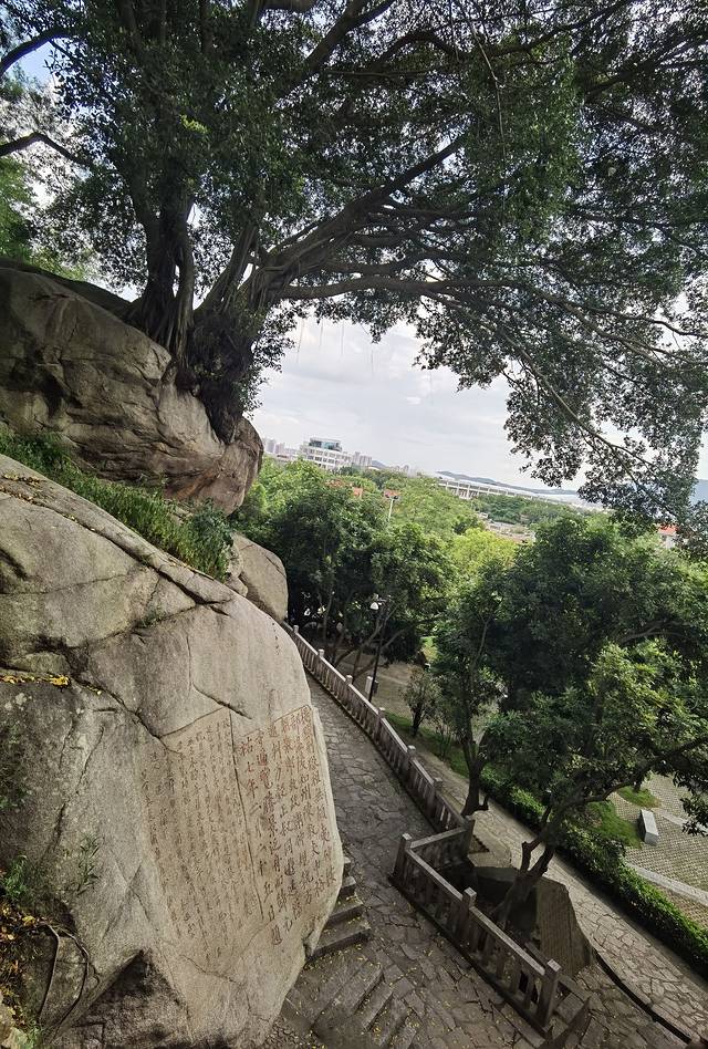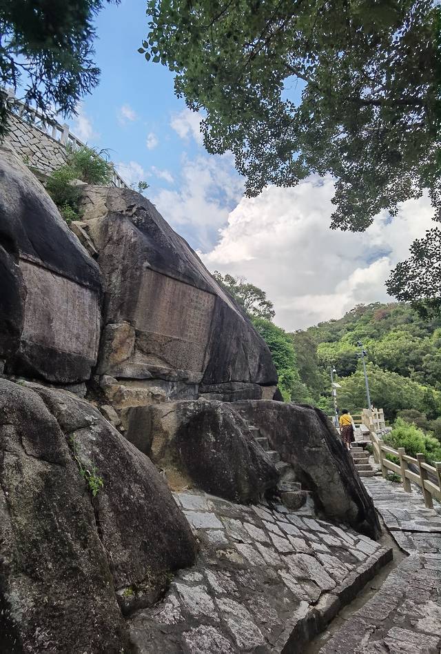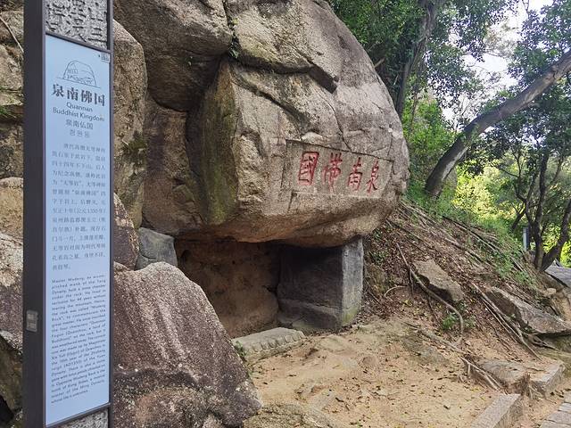 位于半山腰的地方,在西峰石刻上一点,可以看到一点泉州的远景
