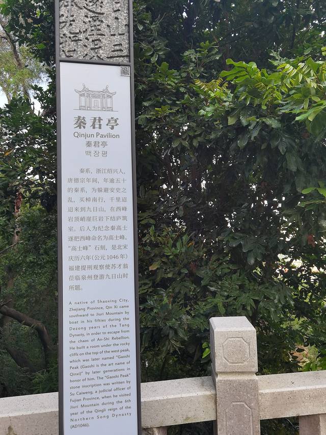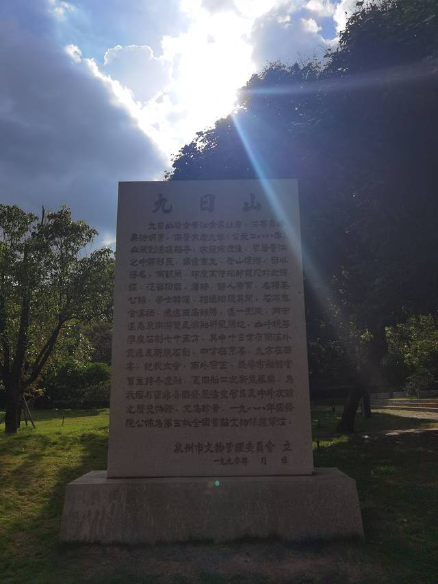 九日山“山中无石不刻字”,现存宋元以来的摩崖题刻70多段,按内容分,海交祈风13段,景迹题名15段,游记诗刻11段,登览留名29段,修建纪事7段,其中有1174-1266年(南宋时)记叙祭海神、祈风顺的石刻十段,最为独具,是泉州海上丝绸之路的珍贵史迹。