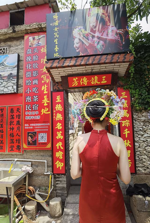 蟳埔村位于福建省泉州市丰泽区东海社区的一个小渔村,因当地蟳埔女人头戴"簪花围"出圈。