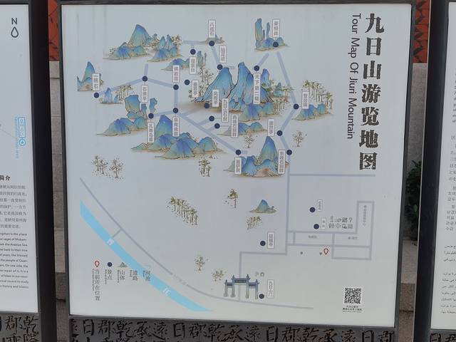 九日山的景点分部图,重点是东峰和西峰石刻,那里有中国古代唯一的祈风石刻