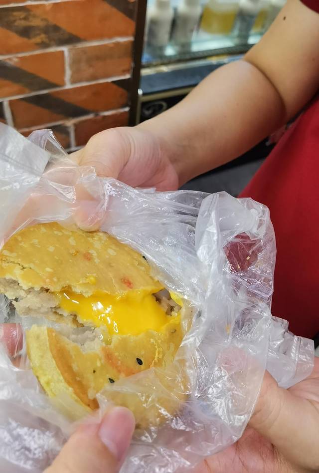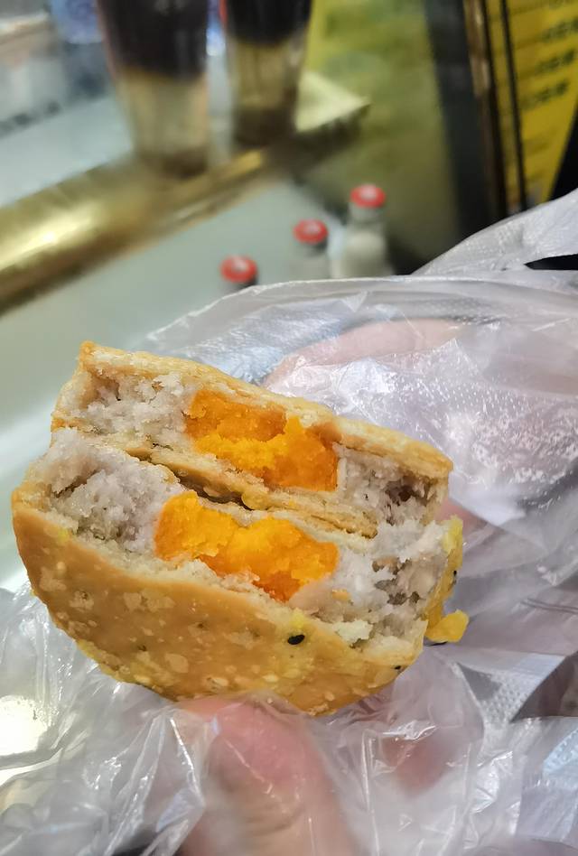 咸蛋黄的,4元一个,咸甜口味,我觉得这个比较好吃