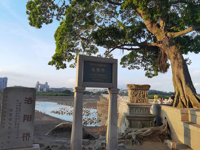 洛阳桥原名万安桥,在洛阳江口,距泉州城5公里,北宋皇佑五年至嘉佑四年(1053~1059年)由泉州知州蔡襄主持修造。列为国家级重点文物保护单位。桥长834米,宽7米。桥上现存亭2座,石将军2尊,石塔5座。碑亭有"西川甘露"碑刻和清道光间石刻"天下第一桥"横额。中亭傍有崖刻"万安桥"、"万古安澜"和12方碑刻。这是我国古代四大名桥之一,享有“海内第一桥”的美誉。