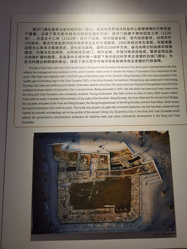 德济门遗址,位于福建省泉州市鲤城区天后路,与天后宫隔街相望,濒临晋江,为泉州古城南城门遗址。始建于南宋绍定三年(1230年),2001年,经过考古发掘,德济门遗址被完全披露出来。