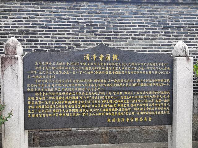 1961年,清净寺被国务院列为首批全国重点文物保护单位,20世纪90年代列为“中国十大名寺”中唯一入选的伊斯兰教清真寺。与扬州仙鹤寺、广州怀圣寺、杭州凤凰寺合称中国伊斯兰教四大古寺,它的建立是泉州海外交流重要史迹之一。