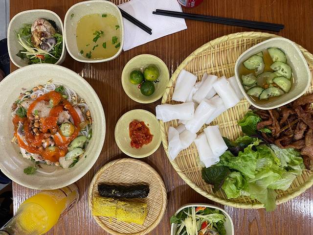 到每一地基本都会在网上看一下当地特色美食及饭店推荐,搜到了华姐鸡粉,点评数量和评分断崖式超排行榜第二名,果断选择了去试试。第一天晚上9点去的,就餐客人蛮多的,鸡粉、春卷、假娄卷、越南面包,各来了一份,鸡粉料比较足,味道都很赞,尤其越南面包,用料很普通面包鸡蛋玉米之类的,做出来竟格外好吃,而且价格实惠。