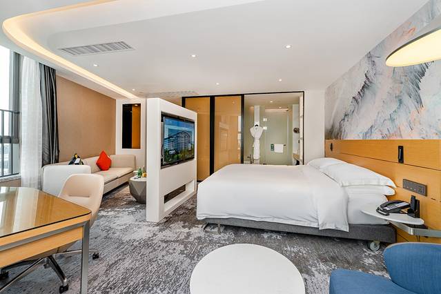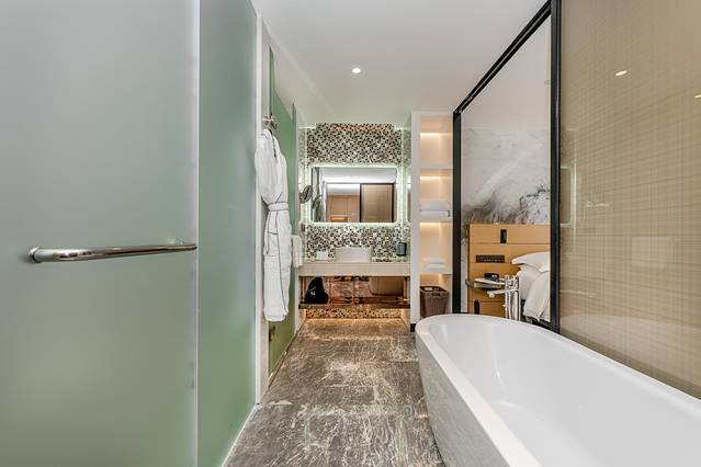 酒店拥有268间客房及套房,此次入住的是“标准套房”。房间装修现代时尚,整体宽敞明亮又舒适。房内设施齐全,独立的浴缸以及配有豪华舒适的纯棉床上用品让您完成工作后放松,尽情畅享美妙的入住时光。