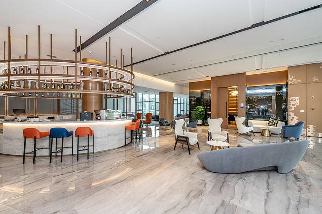 一楼大堂装修时尚典雅,富有都市现代气息。步入大堂就能体验到酒店工作人员“宾至如归”的服务。大堂一侧有一个超大面积空间的“轻松办工区域”。是一个不管是工作或娱乐都能让身心放松的地方。
