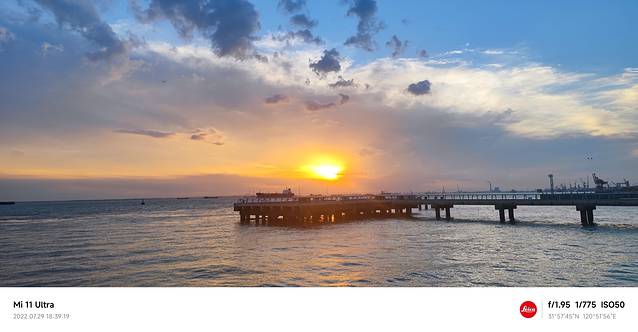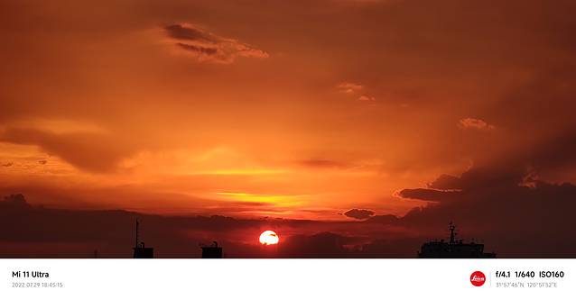 天边的云本身就好看,再搭配江面与落日,俨然成为了一副绝美的画卷。落日依云霞照面,水天一色,霞光透过云层,浪花抓住橘黄色的糖,表达着它的快乐,云层变幻,每一处、每一刻的美丽都是不一样的。