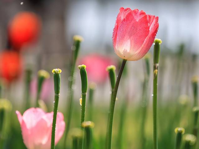 ◆单独拍郁金香花朵不是太好看,还需要配上一些绿叶或虚化的其他颜色花朵就更好。