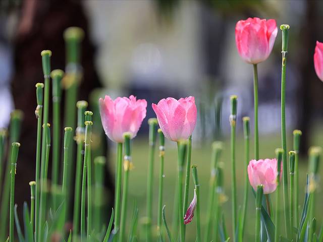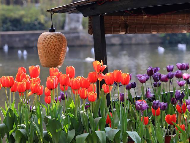 ◆从东门到“三角花坛”,一直到唐堤拱桥等地方,在路两边均有郁金香布设,而且花开正艳,赏花旅拍正当时。