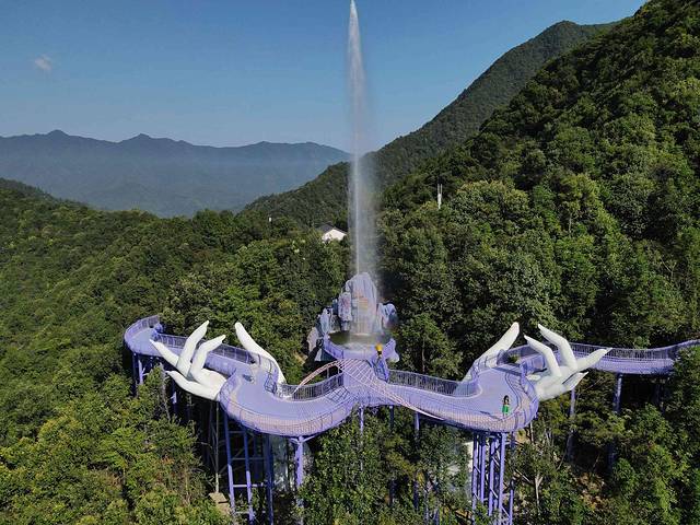 ①紫绫纤手,经过飞天魔毯和揽胜之巅再往前走就是紫绫纤手。在崇山峻岭中的悬崖峭壁上居然凸起了一处环廊,环廊又被两支芊芊玉手捧了起来,站在这里眺望远方,果然风景这里独好!