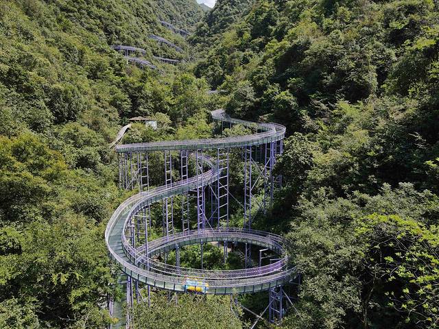 穿过天子洞就来到了世界纪录——紫龙峡漂流,它是国内最长的一条带状高空玻璃漂流,也是被世界WRCA纪录认证的“全球最长的通体玻璃漂流”哦。