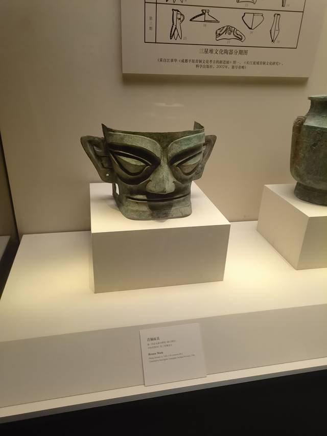 三星堆青铜立人面具,很震撼,三星堆出土。