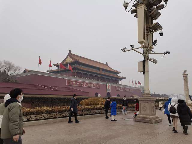 天安门,幸好预约了故宫的门票,不然还进不来,北京大部分景点都要提前一天哦,千万要提前约好,不然临到门口进不去应该会哭死。天气还有点冷,但是老爸老妈都很high哈哈。