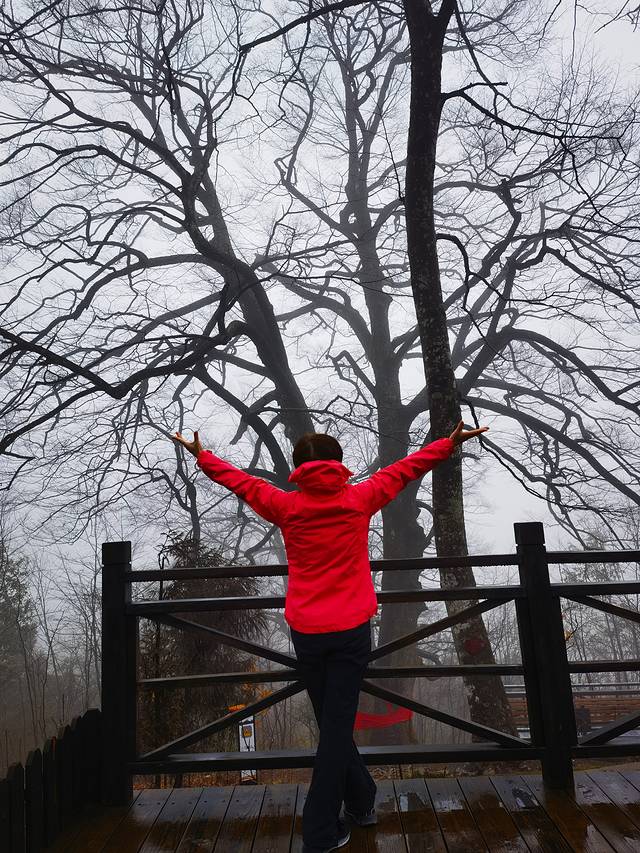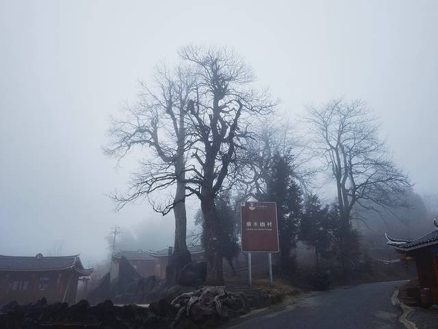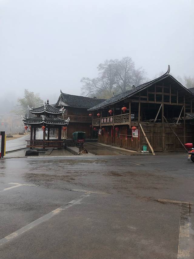 今天去游花瑶古寨,古寨的歌舞台大气.没有人气,游客接待中心也🈚️人,无法咨询怎么游览,这时见到了-队领导人来参观,我们也跟随领导人的脚步,去参观了一下花瑶古寨的崇木凼村,有成片的古树林与原始的民居,是花瑶人最为集中的一个寨子,但游客很少。水雾弥漫,家家关门闭户,我们就参观了一下参天古树