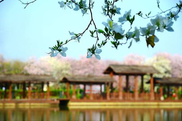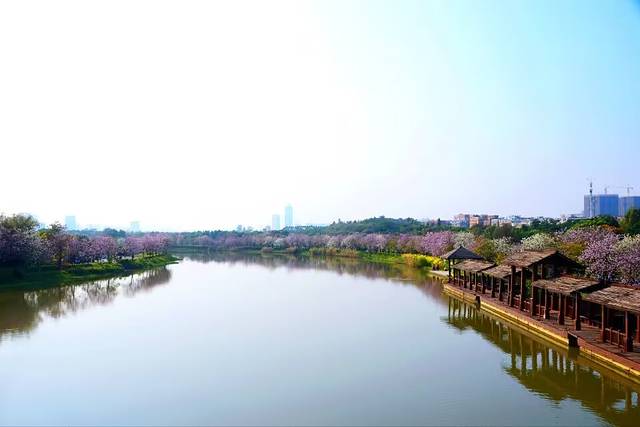 行走路上,可近观花瓣纹理,嗅淡淡暗香;漫步桥上,可远眺粉色花海蜿蜒远去。偶然春风吹过,飘落几片花瓣,那是春天送给你我的礼物。