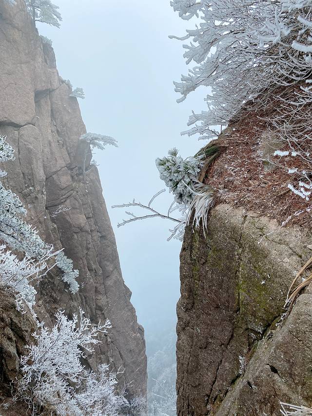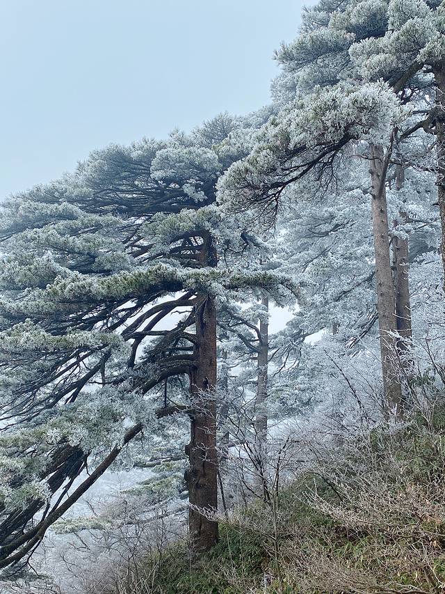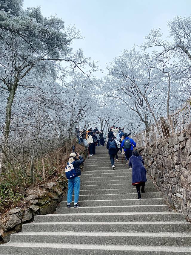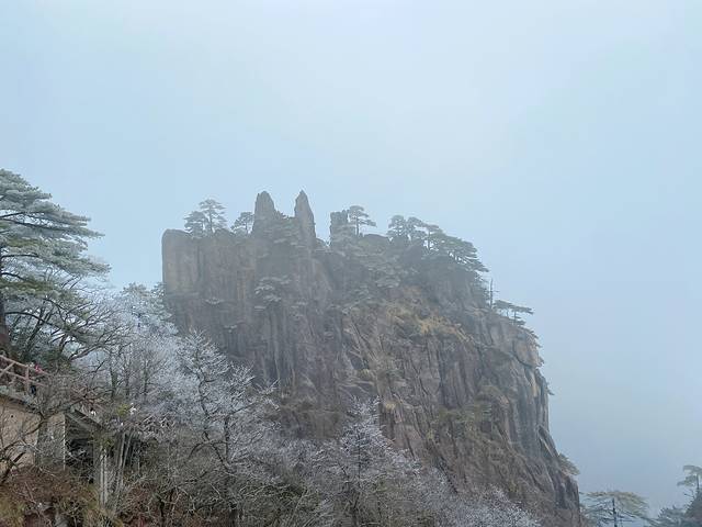 考虑到大家经过一周的工作都有些身心去批,所以我们周六在9:00才出发前往黄山风景区。大概10:30左右的时候才到达风景区的路口,并进行检票。不得不说可能是因为疫情时间太长,压抑了大家的出行旅游计划当天的人特别的多,排了大概有一小时的队伍才乘上索道。周六的天气不算特别的好,温度很低,山上的风特别的大,并且有浓厚的雾,因此也在黄山上看到了难得的雾凇景象,特别的美。