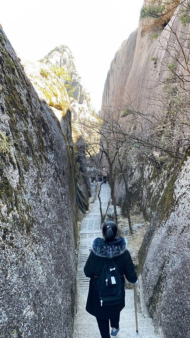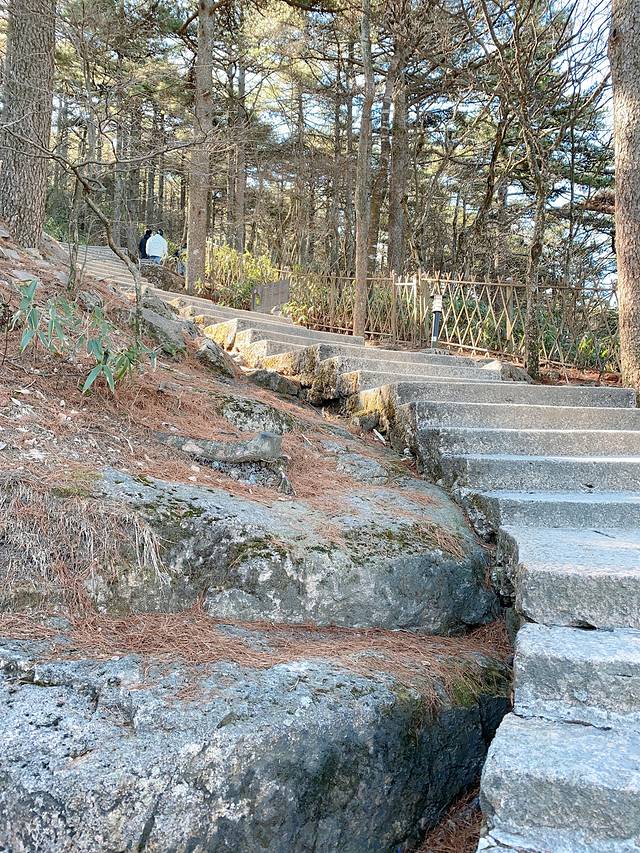 周六上午到中午之前有出过一段时间的太阳。但温度依旧很低,到下午时间基本天色就逐渐变暗,温度一直保持很低的状态。吃饱喝足补充能量后,我们去往了光明顶。因为住的酒店在丹霞峰附近,要去往光明顶,需要先下山再上山。因此体力消耗特别的严重,特别的累。 因为当天也没有其他的行程,所以大家也并不着急,花费了两个多小时。从光明顶到排云酒店的来回。最终大家都累瘫在酒店进行歇息。