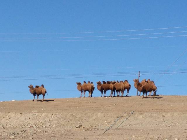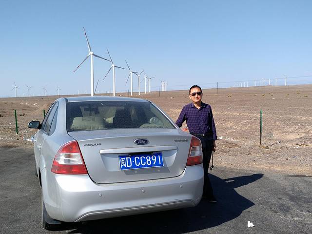 一眼望不到边际戈壁滩山是数不清的风力发电机,和小福一道与风车合个影