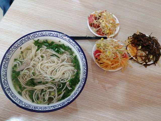 早上在酒店门口吃了一碗拉面,叫了几个小菜