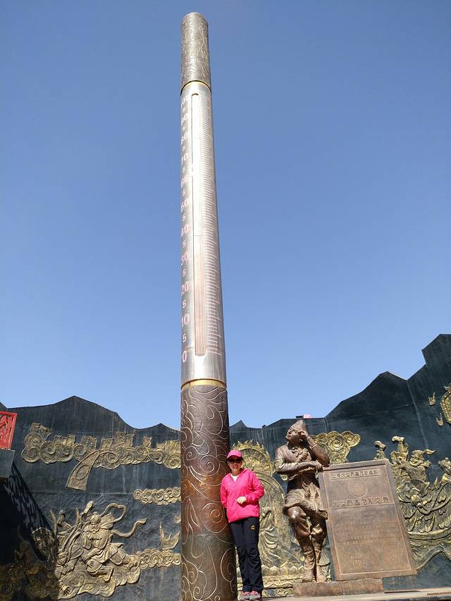 猴哥的金箍棒摇身一变成了温度计了。火焰山是全国最热的地方,夏季最高气温达47.8度,地表最高温度在70度以上。