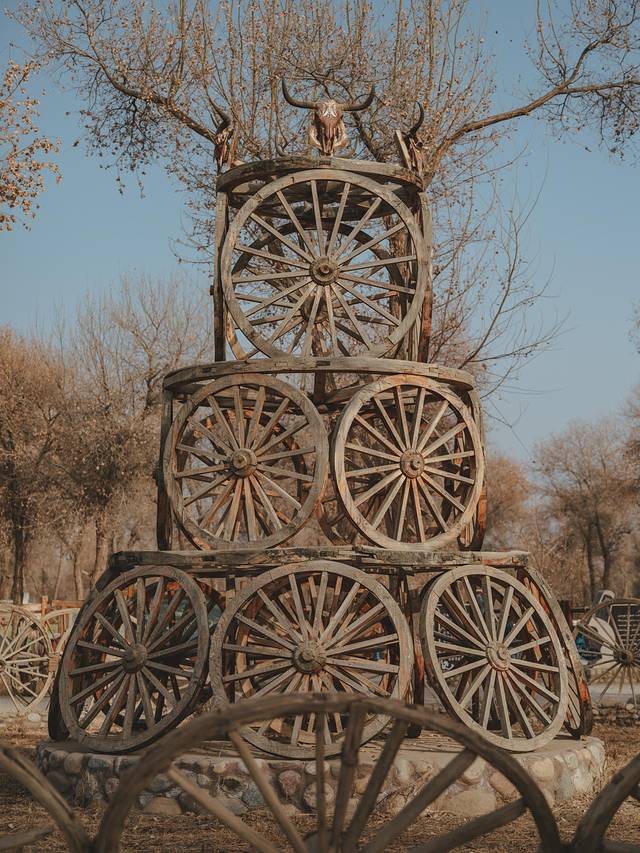 刀郎人曾经生活的场景,祭祀广场、劳作工具以及家畜动物等景区内都有展示,依稀能够在此寻找到刀郎人生活的印记。