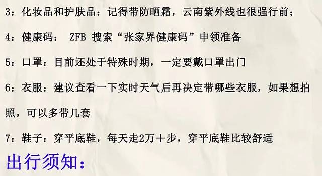 小贴士:记得带薄外套、墨镜、晴雨伞、披巾,去张家界会用得