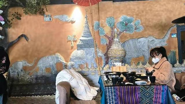 缅甸人开的网红洗头按摩就在芒市广场对面,过年原因排队很长,而且大部分是本地人排队,我早上去的说要排到下午,就果断放弃了,没亲自试过就不做推荐度了。扫个共享单车直接去“勐巴娜西珍奇园”。