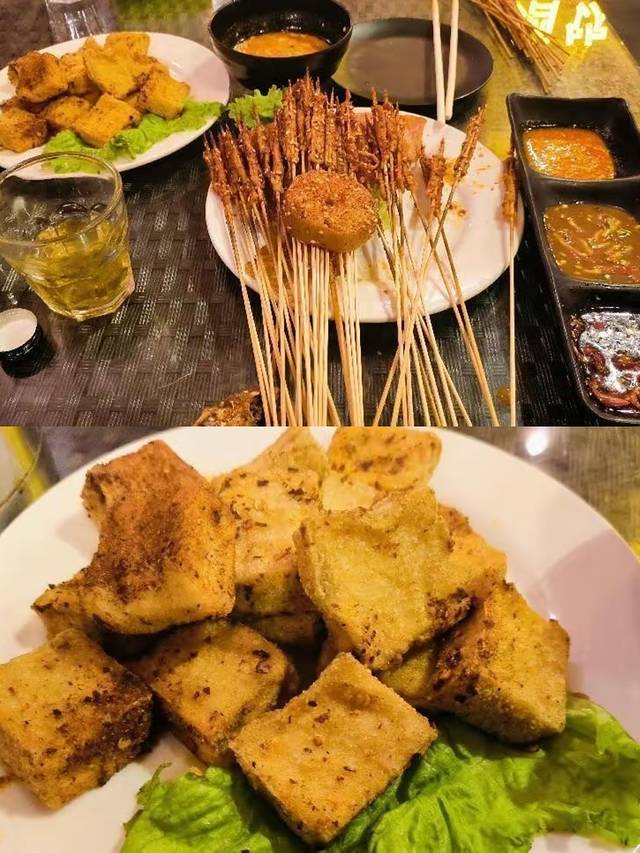 折腾八个小时终于到了,搜了酒店附近的一家酒饮发烧烤,花费84元,蘸料比较有特点。(推荐三星)