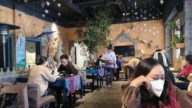 见到朋友,吃饭时间还早,说请她们喝咖啡,去了网红的梅子咖啡,结果老板说放假了。又问了附近另一家人气比较好的,也说人满了没座位。当地人看来挺喜欢喝咖啡的,最后打车去了一家比较偏的雨林咖啡。这家咖啡厅装修比较有感觉,里面加上我们只有两桌客人,里面放了很多杂志和设计书(当时跟朋友还说老板可能是我设计师同行,后来结账开发票,店员加我微信,一看我微信名字说跟我是同行,她们也是做软装设计的,这边开的民宿和咖啡馆),三杯咖啡加蛋糕消费124元。(老板说同行打了个折收110元)是一家没事可以去安静的发呆或看书一天的地方(推荐三星)
