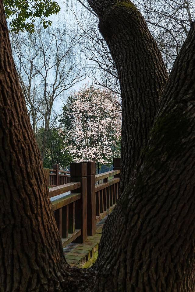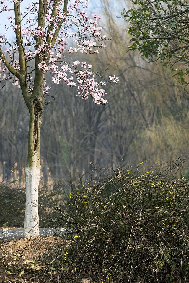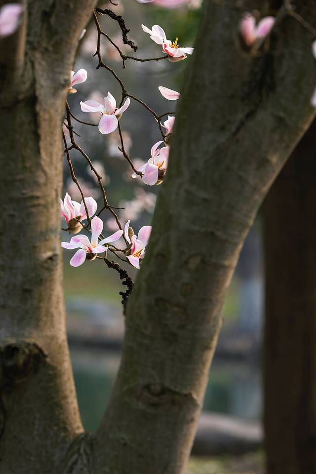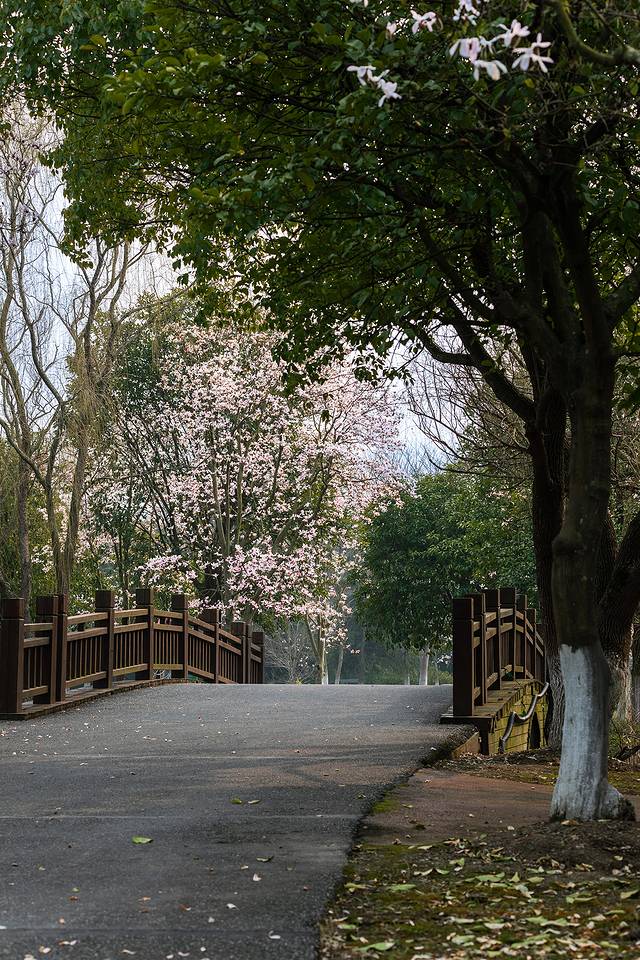 徜徉在落满丁达尔光线的花道里,沐浴着早春的阳光,看玉兰花在晨风中轻盈起舞,伴着沿路而行的潺潺河流,不禁是要陶醉了。