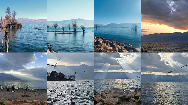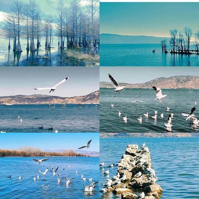 白色的海鸥蓝色的洱海