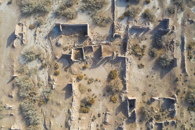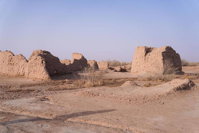 另一部分为东南方向的住宅建筑群,约有7.5万平方米,多为残垣断壁,基本结构隐约可辨。住宅建筑群内有一条西南走向、宽5米的中央大道、许多纵横交错小巷和几个干涸的大池塘,可以遥想当年的喧闹和繁荣。紧挨古城墙南边,有一穹窿顶极为精致,连接着时有坍塌的四方形围墙。