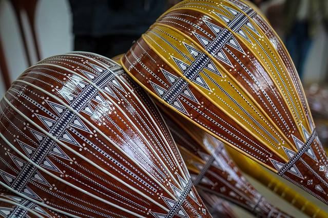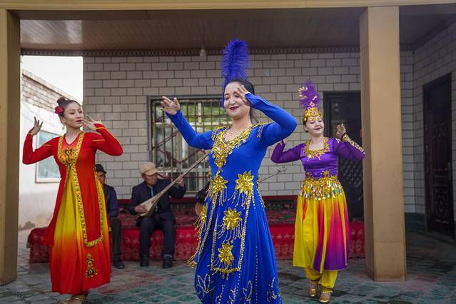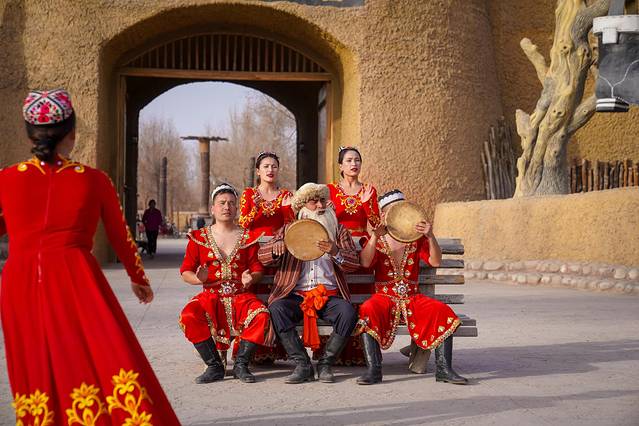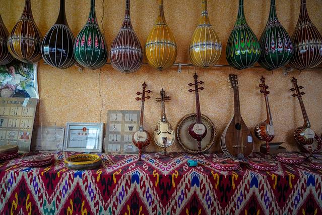 新和 县天籁加依村,被誉为“ 新疆 民族乐器手工制作第一村”,该村村民多以手工乐器制作为生,产品远销海内外,依托龟兹乐舞文化资源,打造了一个集乐器制作、乐舞展示、民俗体验、摄影影视为一体的特色民俗文化旅游景区。