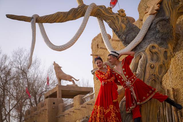 刀郎部落景区的面积较大,长宽都有近1公里,进入景区后可以步行游玩,也可以乘坐景区的马车,游览至少3-4小时。 景区的西侧紧靠河流,这里种植了百果园,环境清新优美,在遍地戈壁的 新疆 地区十分独特。景区内有许多特色的 新疆 玩法, 比如 骑骆驼、羊拉车、喂鸽子、斗羊、赛马等等。