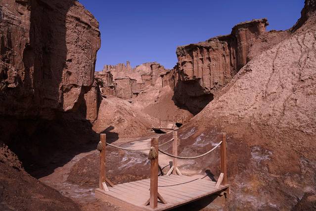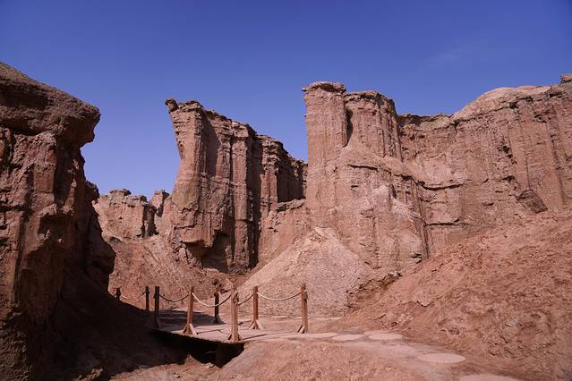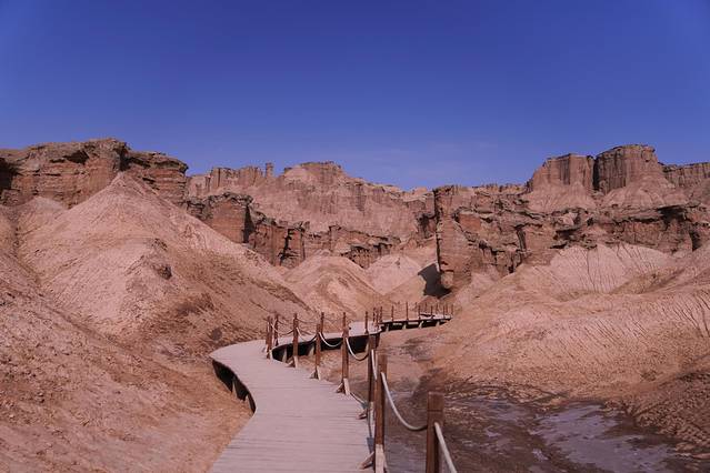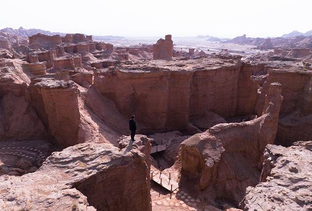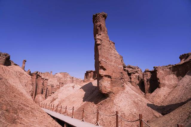 离开克孜尔千佛洞,驾车来到了超级出片的克孜尔红 石林 ,这里又叫做“魔鬼城”。红 石林 位于 新疆 阿克苏 地区 拜城 县克孜尔乡和黑英山乡之间,以褐红色和姜黄色为主,由剥蚀、风蚀和流水作用形成,纵横交错的沟谷和梁脊、台地、孤丘总面积近50平方公里。